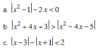 Bài 2. Giải các BPT có dấu giá trị tuyệt đối sau: