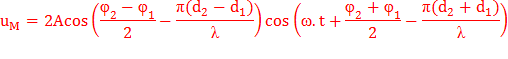 Điểm M sẽ dao động với phương trình tổng của hai phương trình trên: