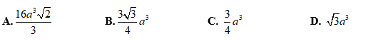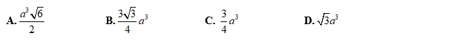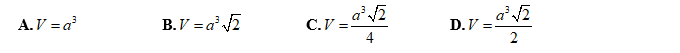 Cho khối lăng trụ tứ giác ABCD.A’B’C’D’ là lăng trụ đứng. Đáy ABCD là hình vuông cạnh a. Mặt phẳng (C’ BD) hợp với đáy góc 450. Thể tích của lăng trụ bằng :